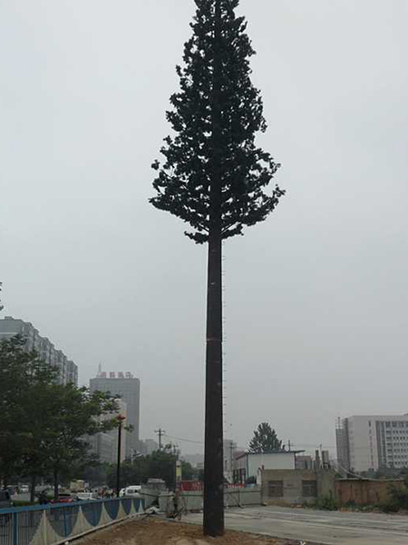 仿生樹,又叫仿生塔、仿生通訊塔,屬于通信發(fā)射塔技術(shù)領(lǐng)域。是讓通信鐵塔與周圍的自然環(huán)境相協(xié)調(diào),有效地解決了風(fēng)景區(qū)等地建站難的問題,其優(yōu)點(diǎn)是保持了原有單管塔的所有優(yōu)點(diǎn),在其外形上作了重大的突破、改進(jìn),以自然生長(zhǎng)的松樹,樟樹等為仿真的造型樣本,設(shè)計(jì)素描圖和電腦效果圖,制訂雕塑和噴涂工藝程序,對(duì)單管塔仿真?zhèn)窝b,使人們察覺不到塔的存在,把它融入了周圍的自然環(huán)境中。