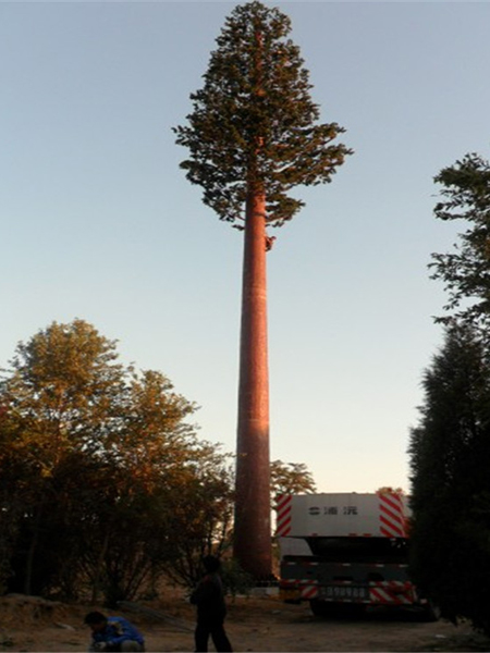 仿生樹,又叫仿生塔、仿生通訊塔,屬于通信發(fā)射塔技術(shù)領域。是讓通信鐵塔與周圍的自然環(huán)境相協(xié)調(diào),有效地解決了風景區(qū)等地建站難的問題,其優(yōu)點是保持了原有單管塔的所有優(yōu)點,在其外形上作了重大的突破、改進,以自然生長的松樹,樟樹等為仿真的造型樣本,設計素描圖和電腦效果圖,制訂雕塑和噴涂工藝程序,對單管塔仿真?zhèn)窝b,使人們察覺不到塔的存在,把它融入了周圍的自然環(huán)境中。