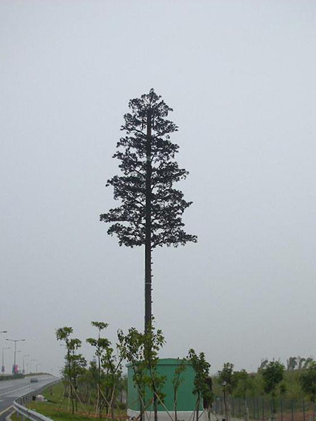 仿生樹,又叫仿生塔、仿生通訊塔,屬于通信發(fā)射塔技術(shù)領(lǐng)域。是讓通信鐵塔與周圍的自然環(huán)境相協(xié)調(diào),有效地解決了風(fēng)景區(qū)等地建站難的問題,其優(yōu)點是保持了原有單管塔的所有優(yōu)點,在其外形上作了重大的突破、改進,以自然生長的松樹,樟樹等為仿真的造型樣本,設(shè)計素描圖和電腦效果圖,制訂雕塑和噴涂工藝程序,對單管塔仿真?zhèn)窝b,使人們察覺不到塔的存在,把它融入了周圍的自然環(huán)境中。