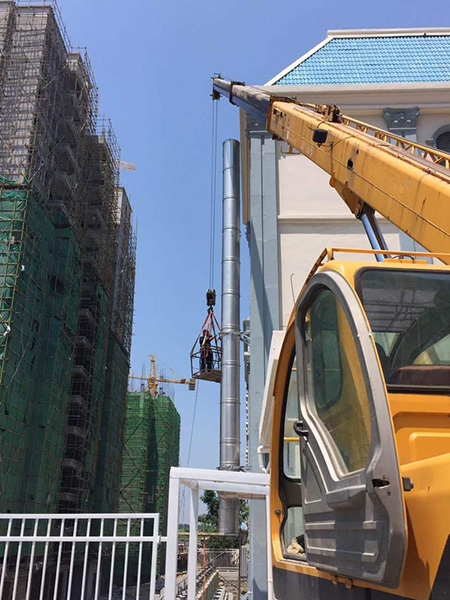 不銹鋼煙囪安裝時(shí),內(nèi)外筒體分別連接。內(nèi)筒體端部與法蘭連接,外筒體通過端環(huán)蓋連接。獨(dú)特的連接方式使產(chǎn)品安裝方便快捷,無需焊接。與傳統(tǒng)的煙囪安裝相比,可大大縮短施工周期,降低成本。煙囪垂直安裝時(shí),一般是垂直貼墻或拉線,水平方向通過支吊架與建筑物相結(jié)合。