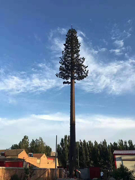 仿生樹(shù) ,又叫仿生塔、仿生通訊塔,屬于通信發(fā)射塔技術(shù)領(lǐng)域。是讓通信鐵塔與周?chē)淖匀画h(huán)境相協(xié)調(diào),有效地解決了風(fēng)景區(qū)等地建站難的問(wèn)題,其優(yōu)點(diǎn)是保持了原有單管塔的所有優(yōu)點(diǎn),在其外形上作了重大的突破、改進(jìn),以自然生長(zhǎng)的松樹(shù),樟樹(shù)等為仿真的造型樣本,設(shè)計(jì)素描圖和電腦效果圖,制訂雕塑和噴涂工藝程序,對(duì)單管塔仿真?zhèn)窝b,使人們察覺(jué)不到塔的存在,把它融入了周?chē)淖匀画h(huán)境中。